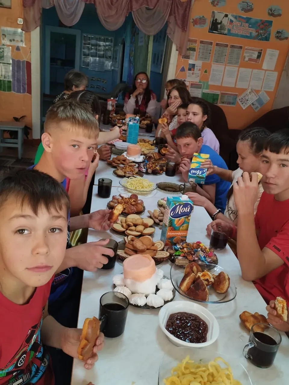 • Совместное чаепитие объединило детей и взрослых.